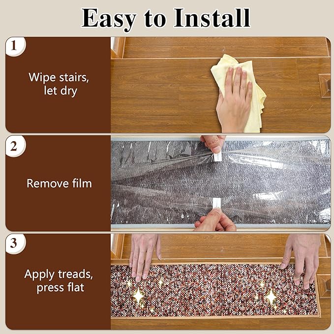 - Durable Construction & Reusable - Built to endure, our carpet stair treads are crafted from the highest quality Chenille, ensuring they can handle the rigors of daily life. Whether it's heavy foot traffic or the occasional spill, our durable stair carpet treads stand up to the test, maintaining their appearance and performance for years to come.