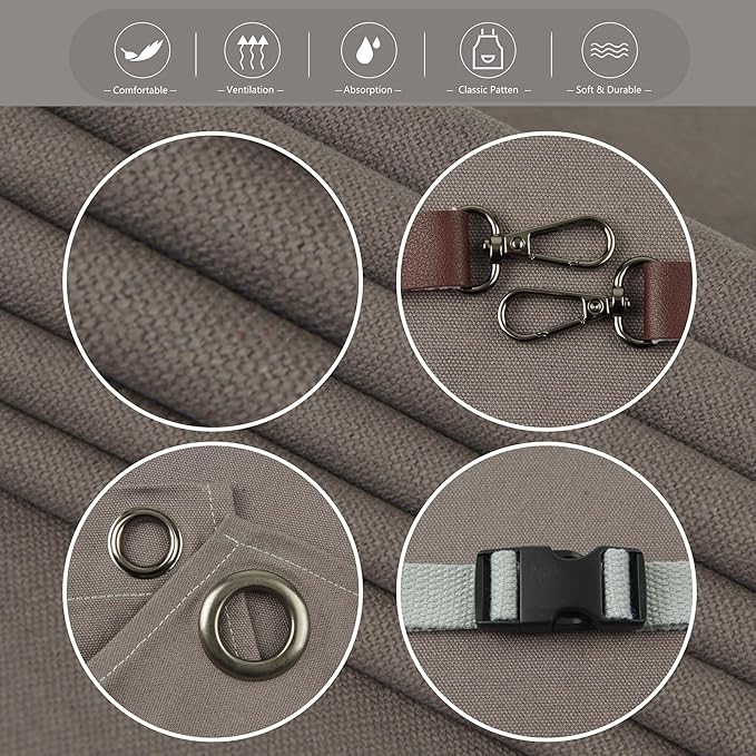 - Expert Craftsmanship: This apron is made of 12-ounce cotton canvas, metal grommets, rivets, and leather. The pockets are reinforced with metal rivets at the corners, with double stitching and bottom folding edges to increase strength and durability