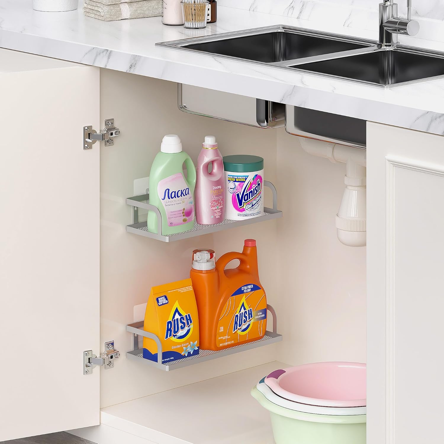 PUSDON Metal Wall Hanging Basket 2 Packs DIY Suitable for Multiple Scenes - Middle Silver Grey Hollowout