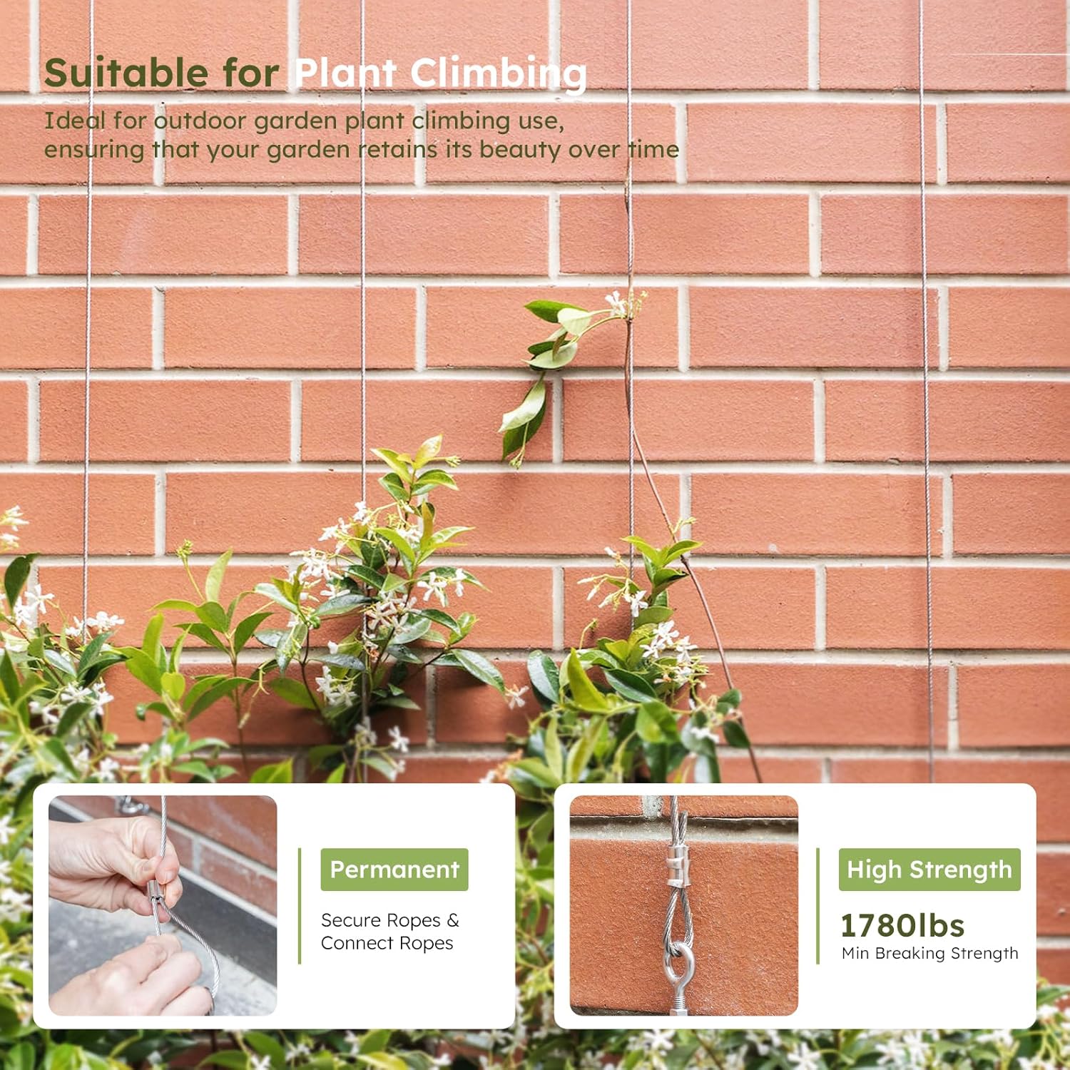 - Perfect for Garden and Decorative Use: Ideal for seasonal plant supports, garden fencing, and lightweight decorations, this wire rope kit offers a practical solution while adding subtle elegance to your outdoor and indoor spaces