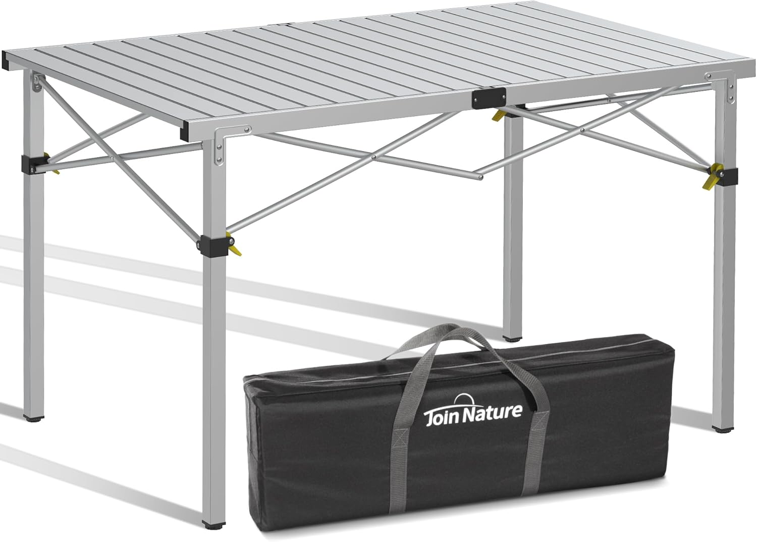 Large 46.4" Camping Table for 2-6 People - 220lbs Capacity Heavy Duty Foldable Outdoor Table with Aluminum Roll-Up Top & Carry Bag, Portable Picnic Desk for BBQ, Tailgating, Backyard (Silver)