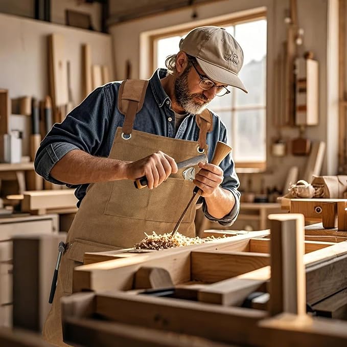 DILLMAN Woodworking Apron for Men Shop Apron Thick Canvas Work Apron with Tool Pockets