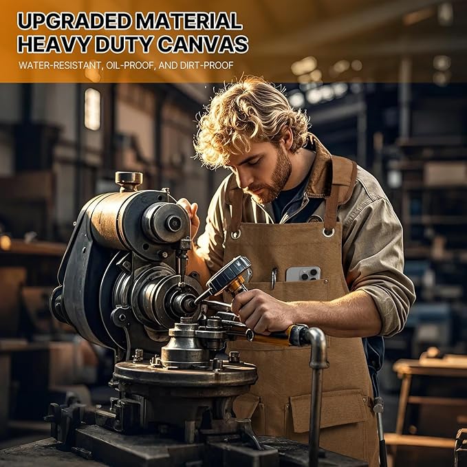 - Water & Dirt Repellent Apron: This thick canvas material makes the waterproof apron effectively repels water and oil, the heavy duty apron is water-resistant, oil-proof, dirt-proof. keeping you clean and protected during cooking, grilling, or baking.