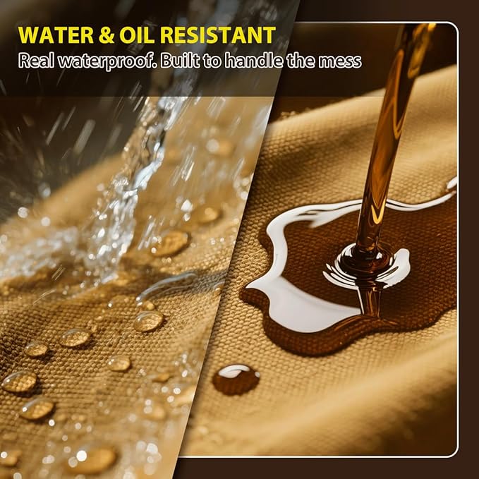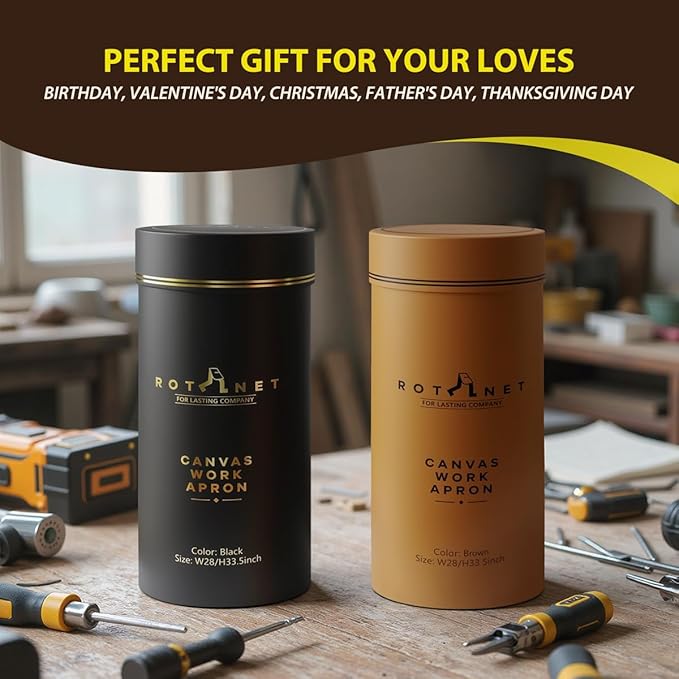- Canvas Woodworking Apron: Crafted from 100% cotton waterproof canvas, this heavy‑duty apron feels thick yet retains softness. Featuring rugged detailing and reinforced stitching, it offers superior protection for your clothes and build quality. Ideal for woodworking, gardening, welding, and more