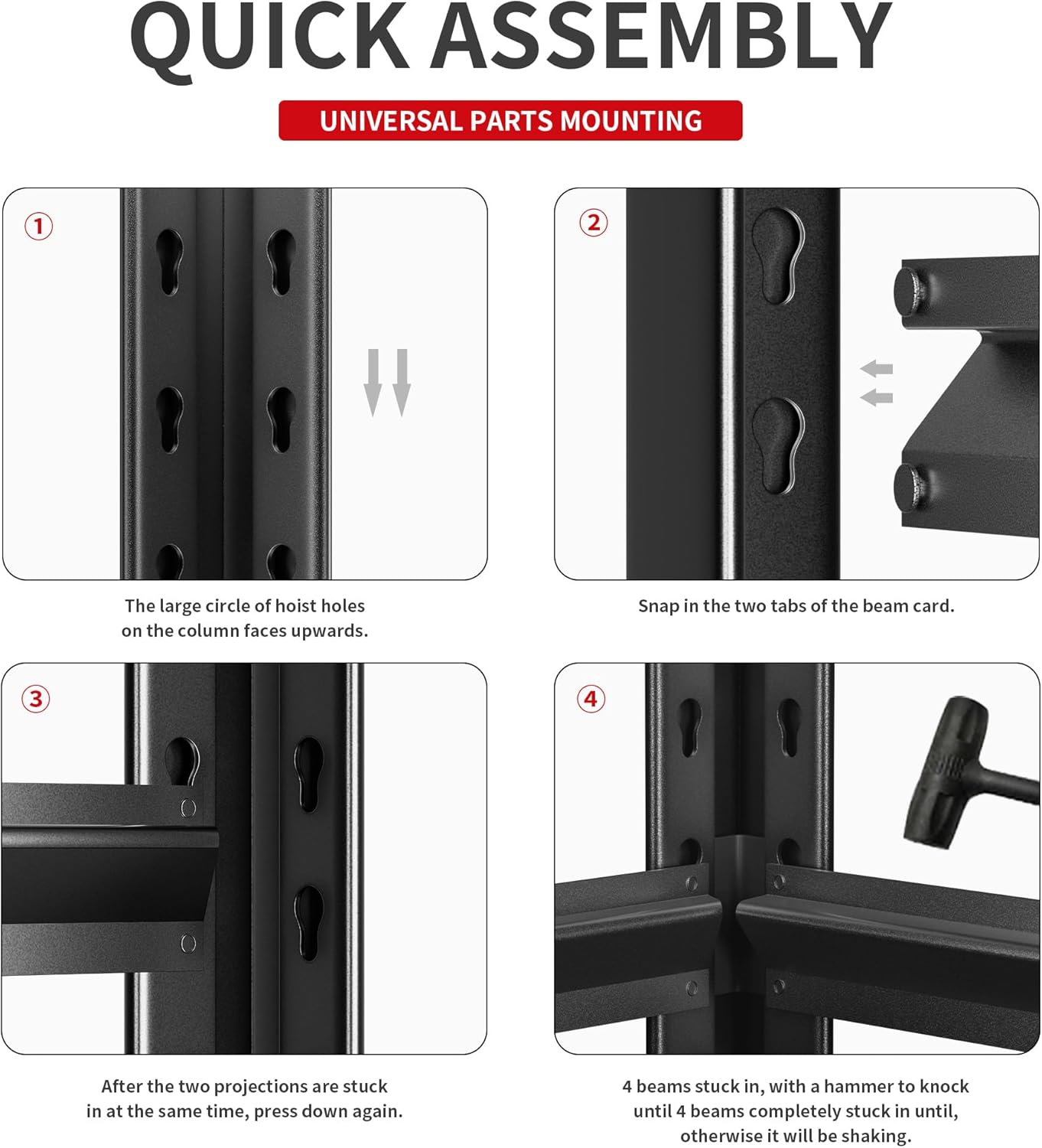- 🍖【Easy Assembly】The garage shelving features a straightforward assembly process, allowing you to set up the shelving unit quickly and without any hassle. No special tools are required, making it convenient for anyone to assemble.