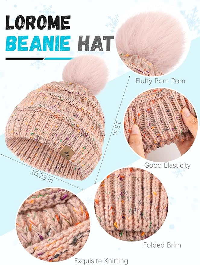 - What You will Get -- 1 set pinkish mottled color womens winter set that includes1 PCS womens beanie hat with pom-pom, 1 PCS scarf for women, 1 Pair touch screen gloves and 1 PCS padded winter ear muffs, suitable for winter accessories.