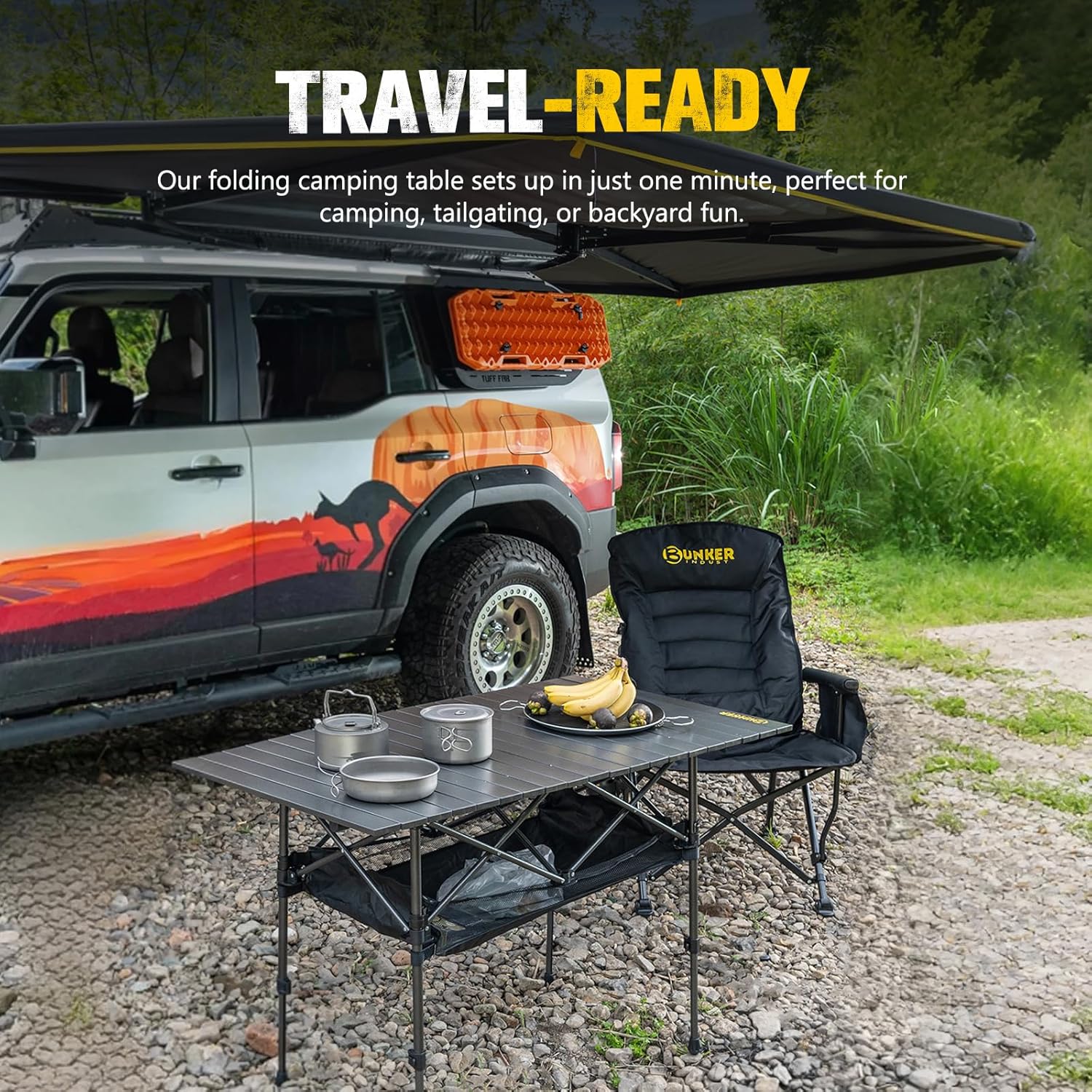 - Quick Setup: Our folding camping table sets up in under a minute, so you’re ready to go without the wait. Whether you’re at a campsite, the park, or in your own backyard, our camping table fits right in, offering a solid, stable surface for meals, games, or gear. With fast setup and reliable support, this table makes outdoor plans easier and gives you more time to enjoy the moment.