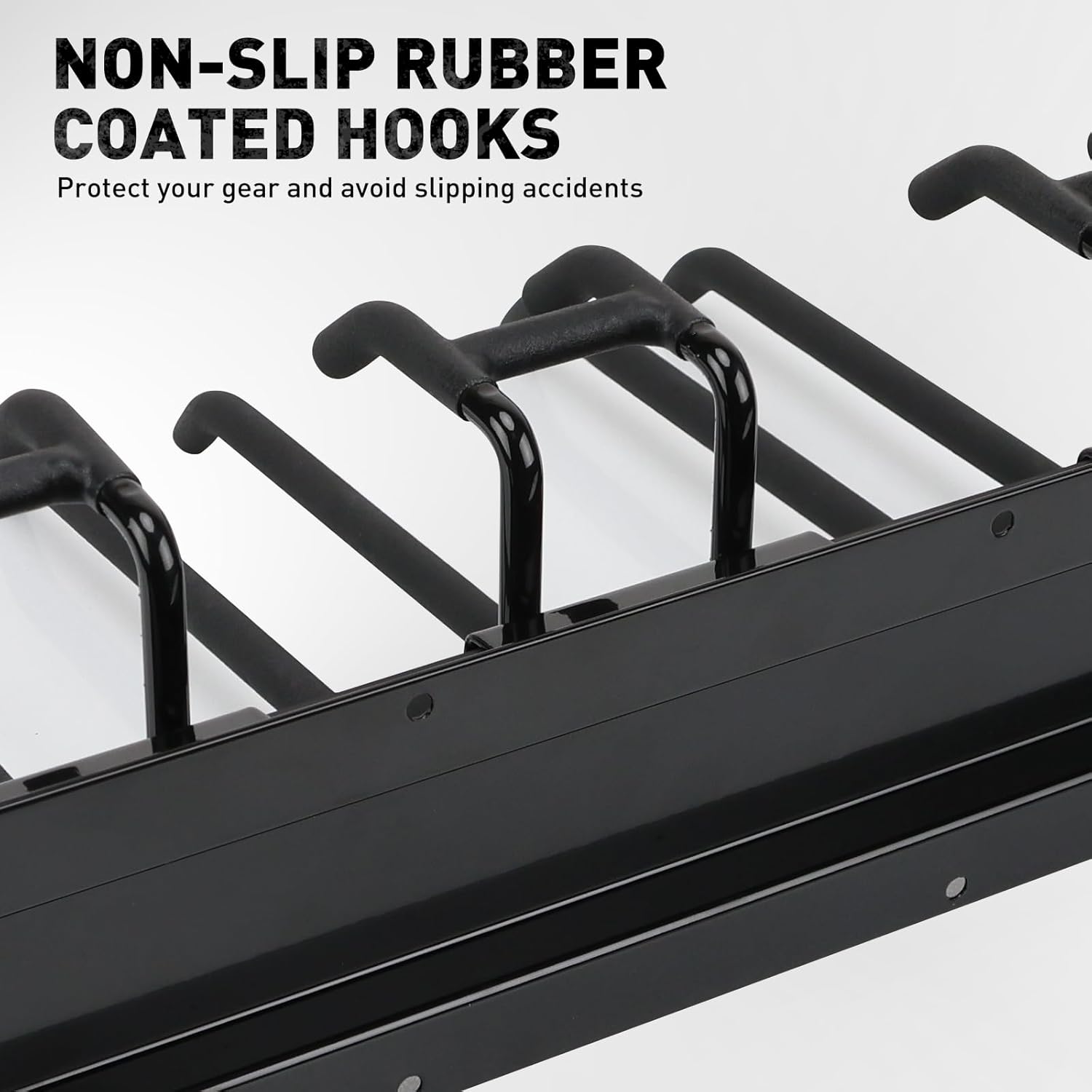 • PROTECTIVE HOOKS - Rubber-coated double hooks keep tools from slipping or scratching while adding a premium look. Ideal for yard tools, garden gear, sports equipment, and more in your garage storage setup.