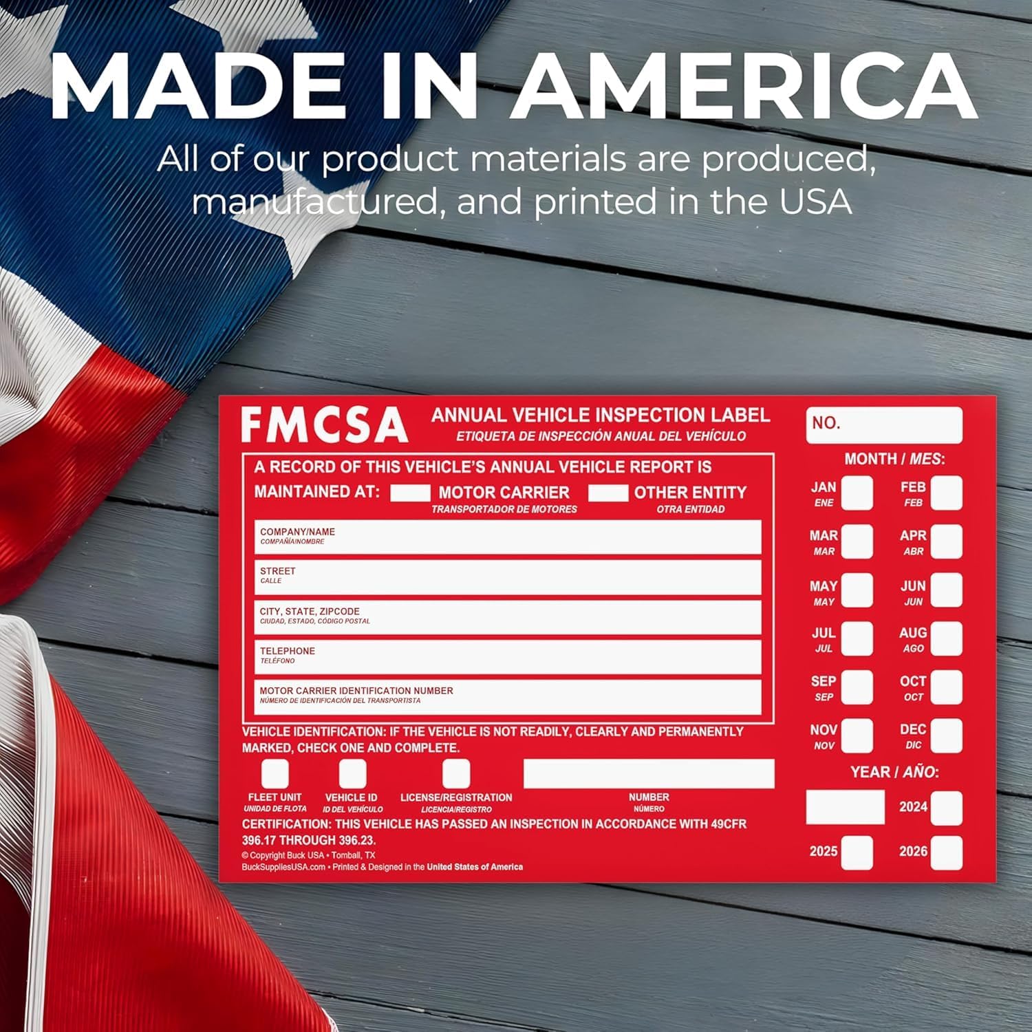 50 Pack Buck Aluminum Annual Vehicle Inspection Label with Punch Boxes, 2 Mil Red FMCSA Self Adhesive Sticker, DOT Compliant, Weatherproof, Tear Resistant, Easy to Write On, 6" x 3.5" - Made in USA