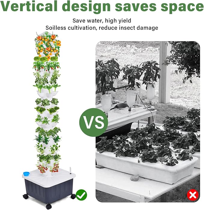 - Wide Applications: This hydroponics tower provides a soilless alternative for indoor and outdoor gardening, allowing anyone to harvest well-maintained farm-quality vegetables in their own home, regardless of living space.