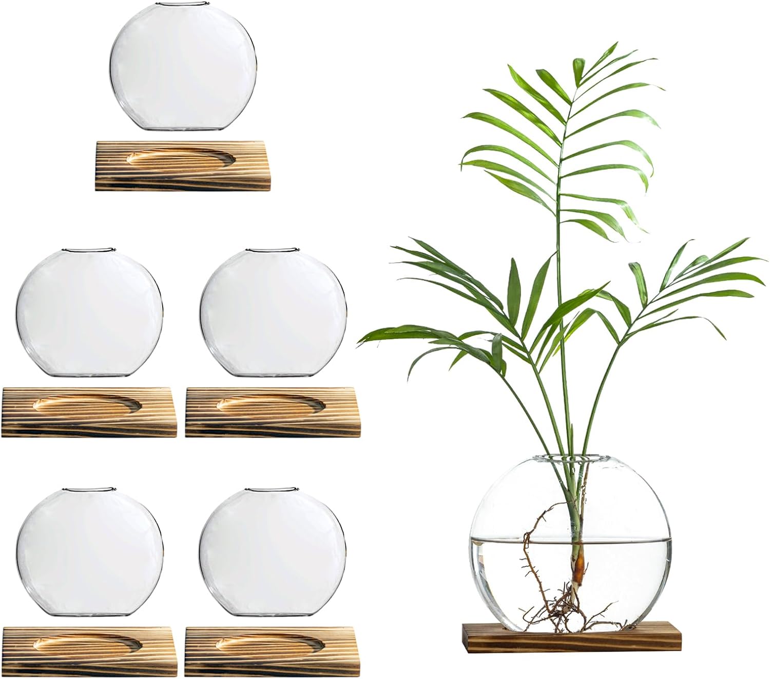 - 【Premium Materials】: The propagation vases made of high-clarity, durable glass and natural wood base. The crystal-clear design allows optimal light exposure and root visibility while the sturdy construction ensures long-lasting use.