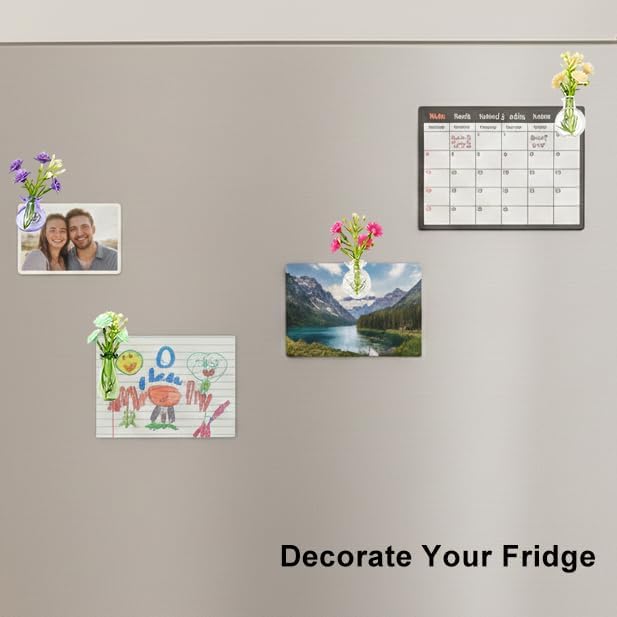 - 【Magnetic Hold】Each vase has a magnet, securely attaching to refrigerators, lockers, whiteboards, and other metal surfaces for displaying notes, photos, or decoration