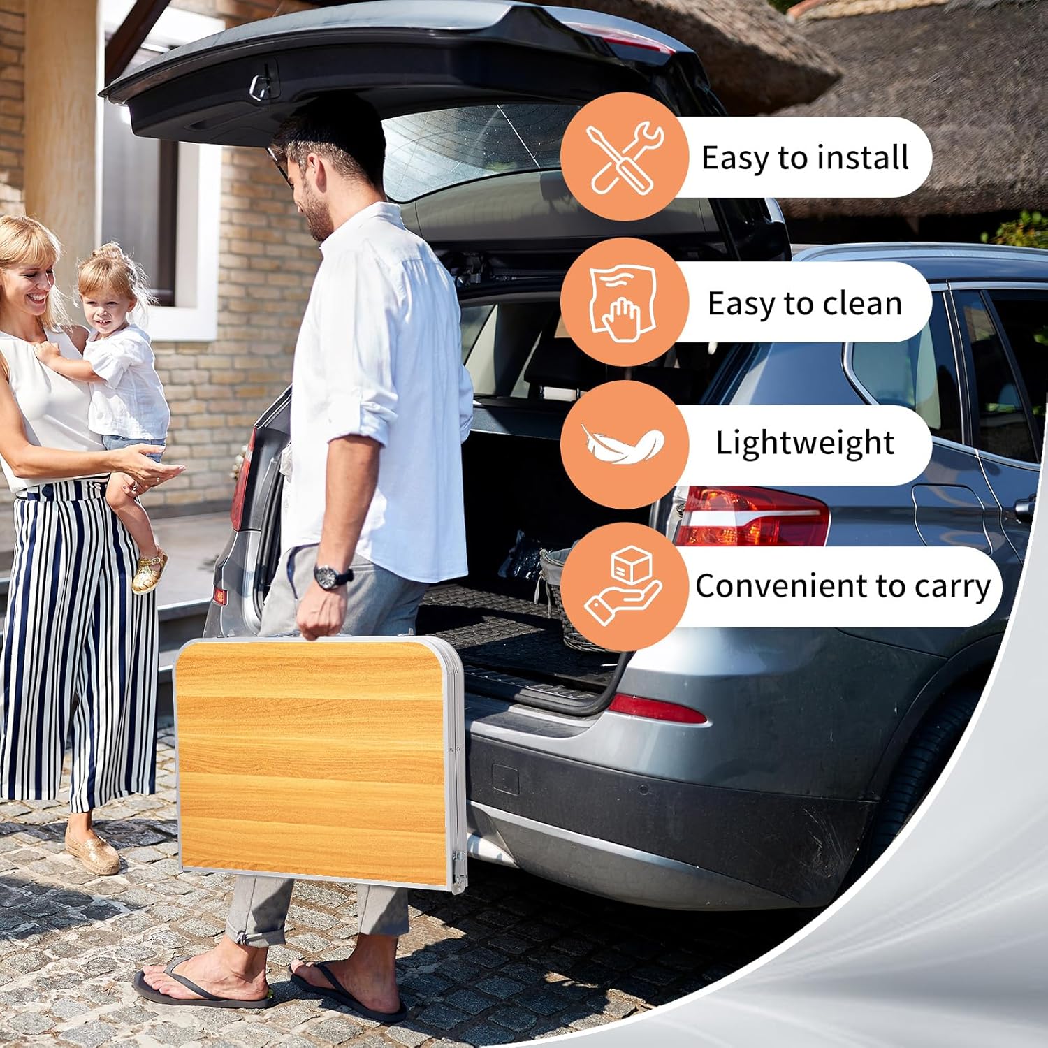 - 【CONVENIENT DESIGN】The rv outdoor table can be easily opened in seconds with just a few simple steps. Quickly fold with the side locks and carry handle. The desktop features fiberboard that is easy to clean stains only by swiping. The 3ft folding table provide convenience in a variety of places for you