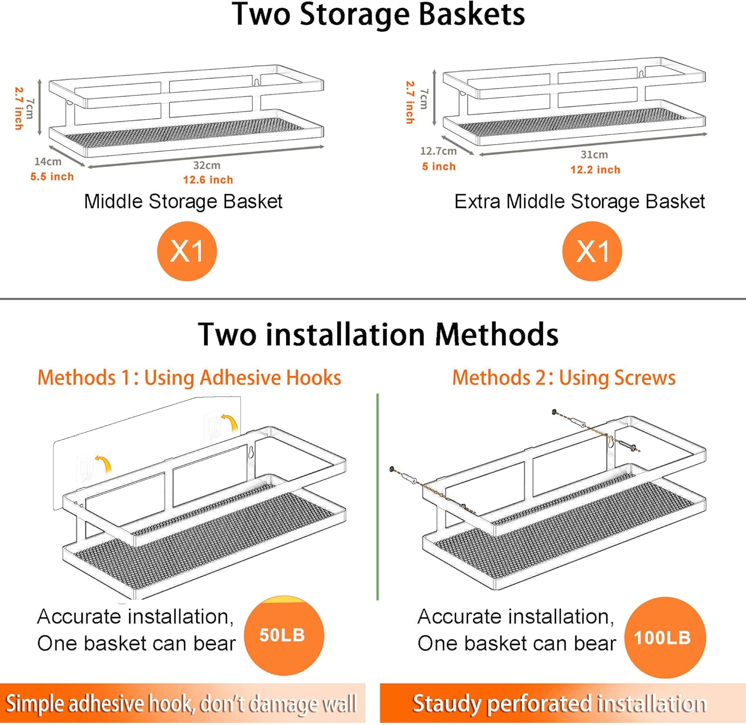 PUSDON Metal Wall Hanging Basket 2 Packs DIY Suitable for Multiple Scenes - Middle Silver Grey Guardrail Suit