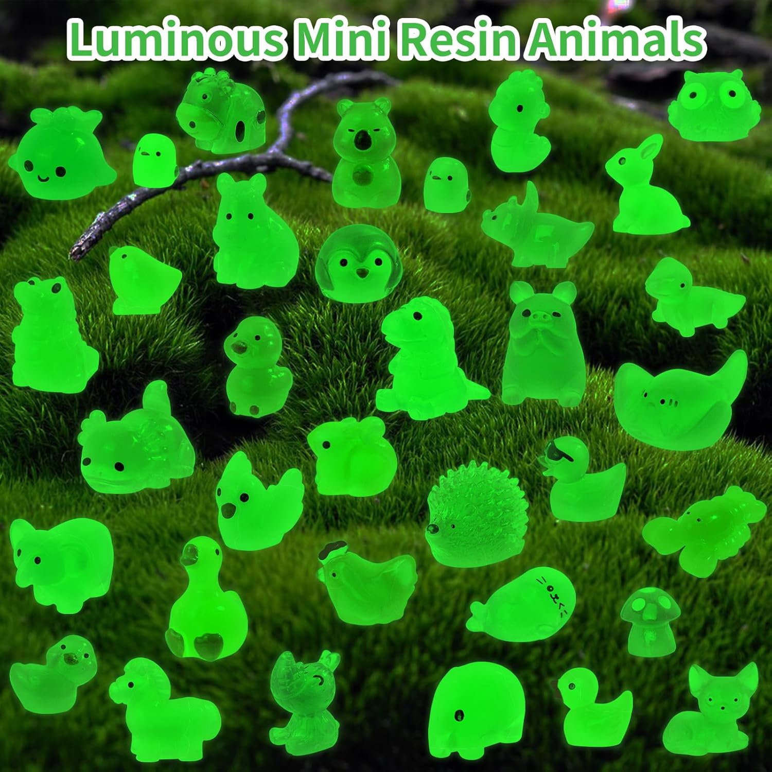 - 【Package Content】You will receive 180pcs luminous mini resin animals in various styles and vibrant colors. A wide mix of animal types and bright color combinations easily meet your DIY decoration needs. Their glowing effect adds a magical touch to your garden or room at night