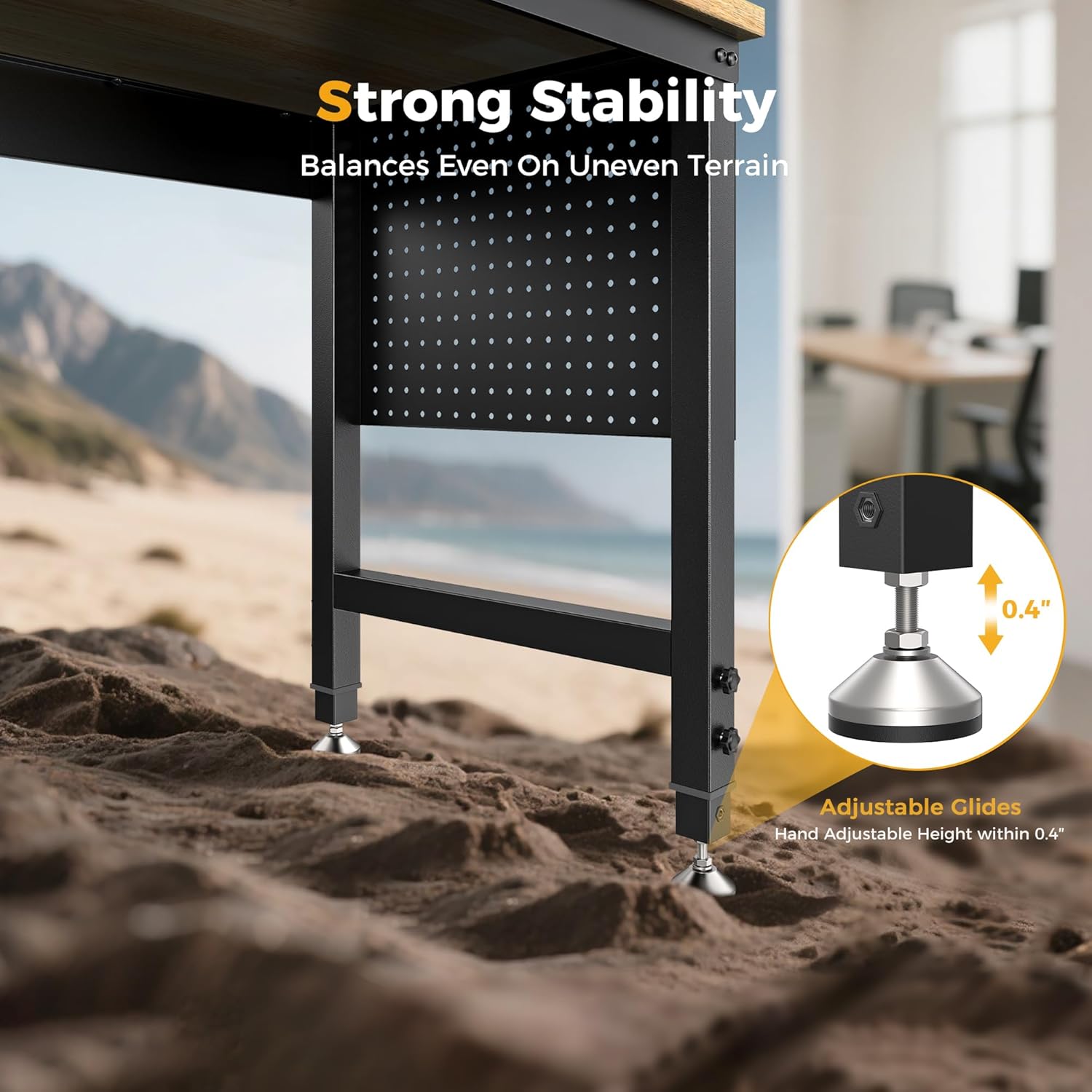 - Stable Structure: Tabletops made of rubber wood have a long lifespan and are environmentally beneficial;Premium carbon steel adjustable glides that can sustain heavy-duty tasks with a maximum load capacity of 2,000 pounds offer stability.