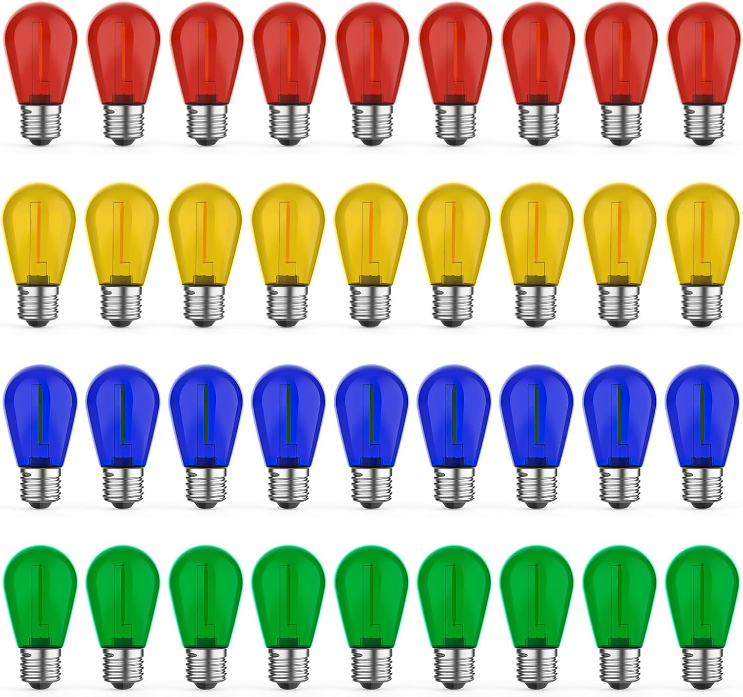 36 Pack LED S14 Colored Light Bulbs for Outdoor String Lights, Shatterproof 1W Replacement Bulbs for Party Lights, 2200K Warm White, Dimmable, E26 Base, Multi-Color: Red/Green/Blue/Orange