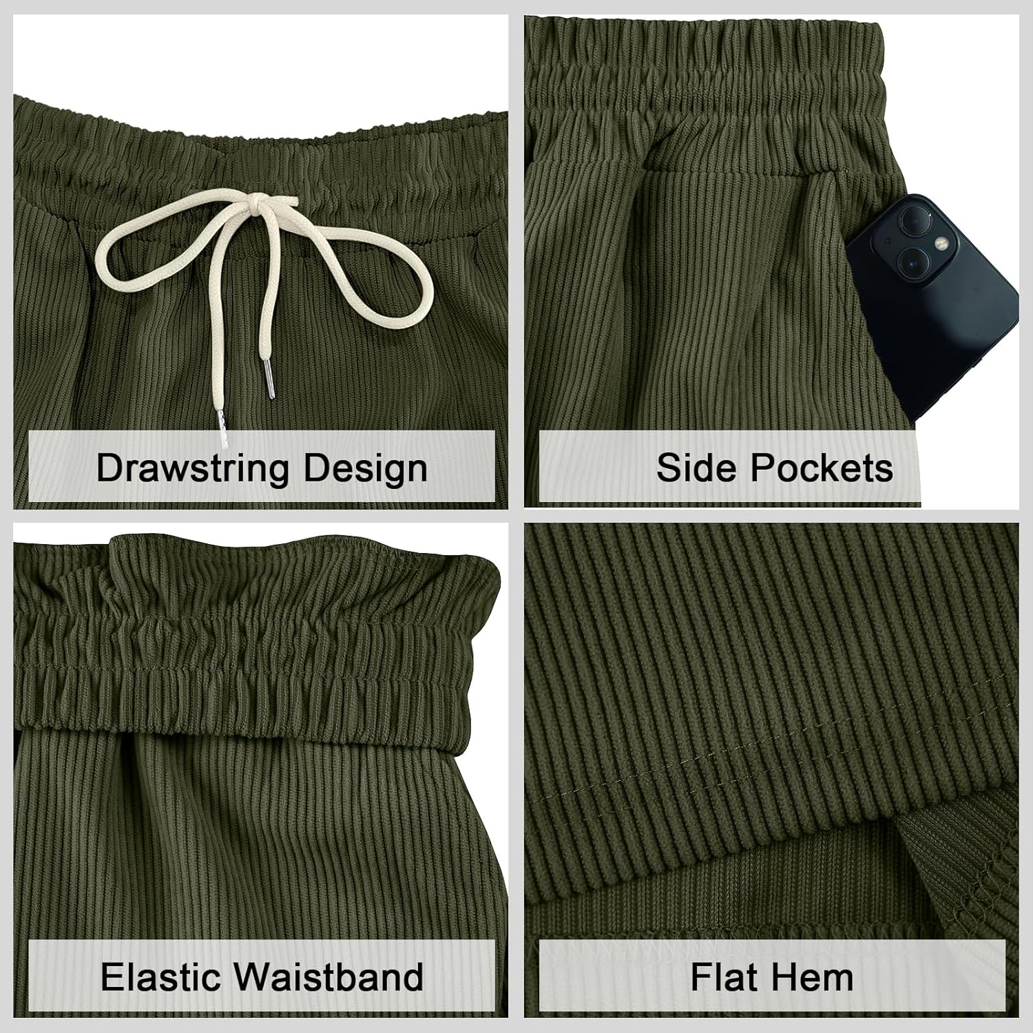 Mens Cargo Shorts Casual Drawstring Elastic Waist Corduroy Summer Beach Shorts with Pockets