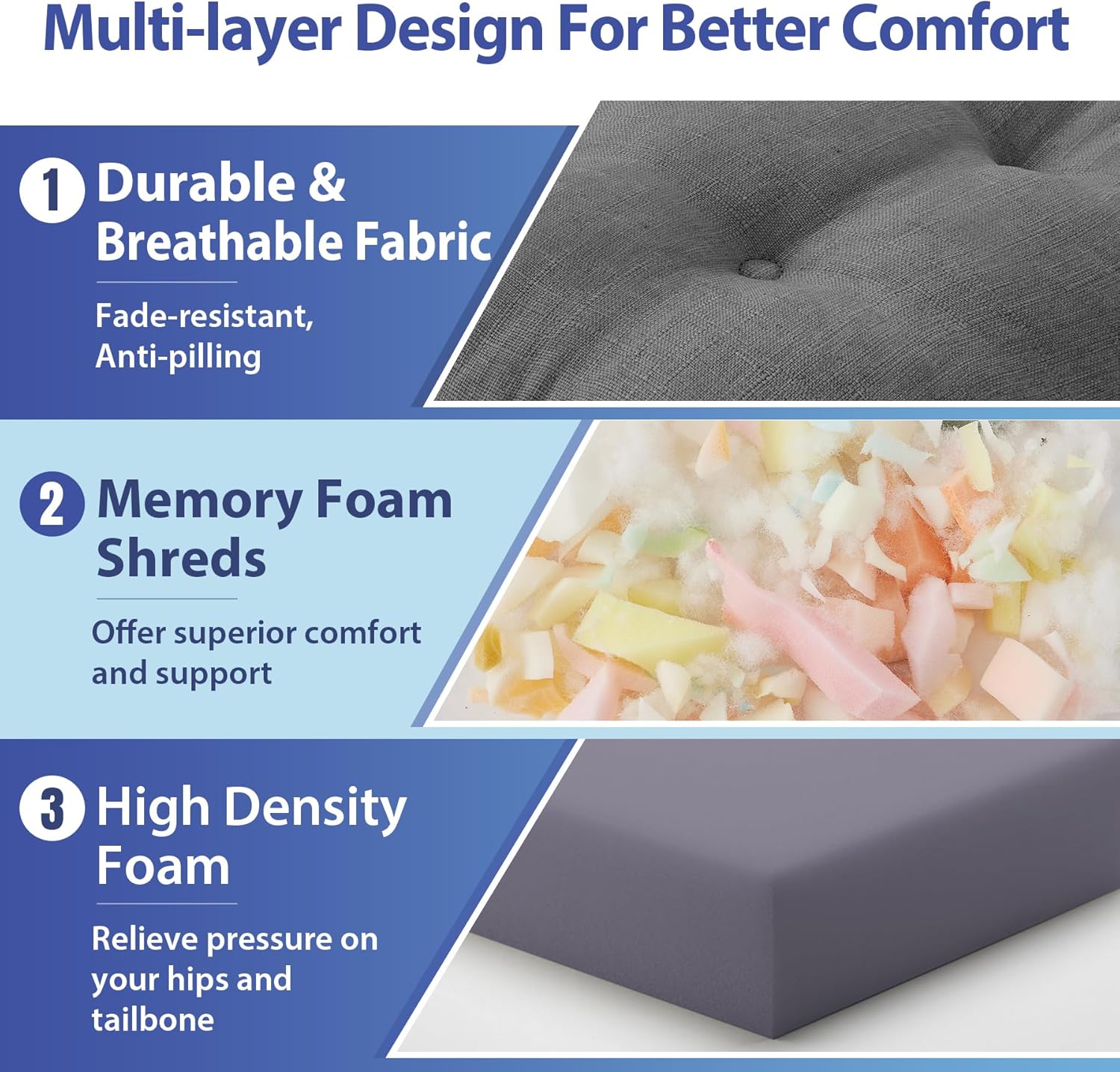 - 【Premium Memory Foam Support】: Designed with high-density memory foam for long-lasting support and comfort, our dining chair cushion offers superior comfort and support, relieving pressure on your hips and tailbone during extended seating