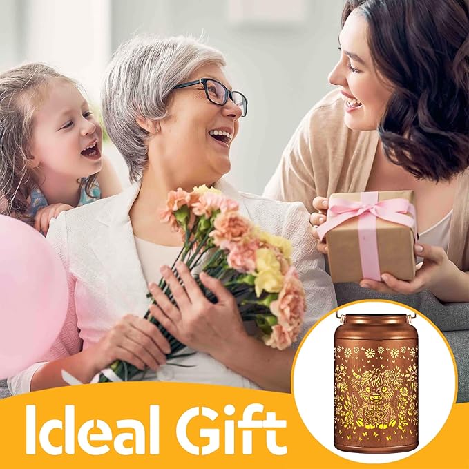Solar Lanterns Outdoor Waterproof Garden Decor Birthday Gifts for Women Mom Grandma Hanging Solar Lights Metal Decoration Outside for Yard, Patio (Highland Cattle)