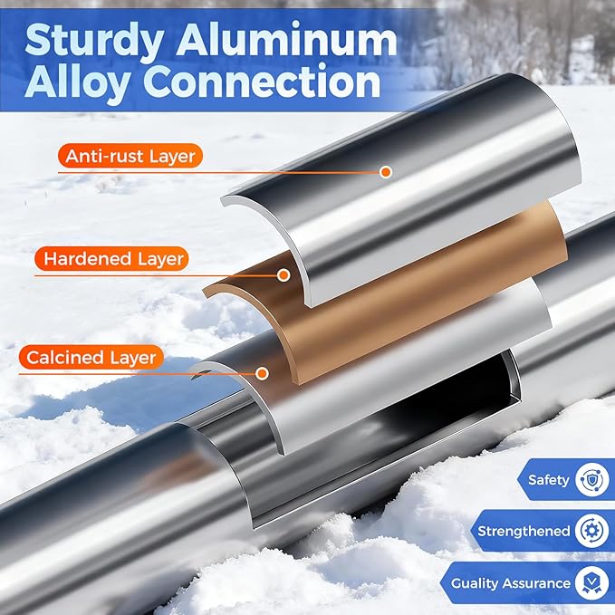 - [High-Strength Telescopic Handle] The COMOWARE snow brush features an adjustable length ranging from 23 to 32.5 inches (approx. 58.5-82.5 cm) , making it perfectly compatible with sedans, SUVs, and light trucks. Built with a sturdy aluminum alloy shaft and multi-stage locking mechanism, it resists deformation and breakage, ensuring reliable performance even under extreme conditions.
