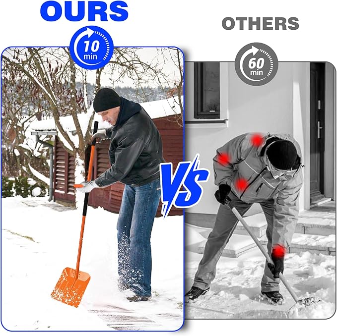 - Ergonomic Back-Saving Assisted Handle: Equipped with a back-Saving tool handle,this snow shovel offers optimal leverage while reducing strain on your back during extended use, perfectly meeting residential and commercial snow and ice removal needs.