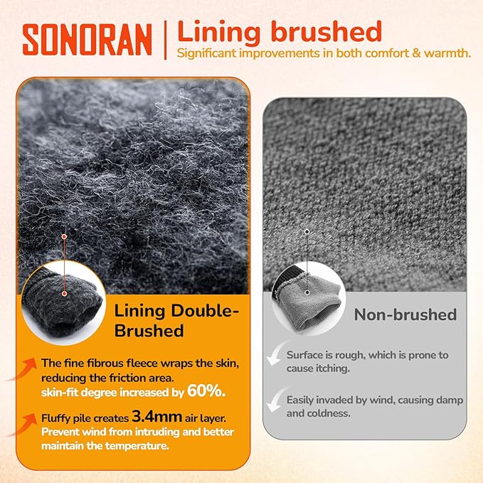 - Merino Wool:Crafted from lightweight merino jersey fabric and anti-pilling acrylic, these gloves provide superior warmth and ensure your comfort all day long. The natural properties of merino wool help regulate temperature and keep you comfortable in any weather. Choose SONORAN premium merino wool gloves to stay warm and stylish all day long.