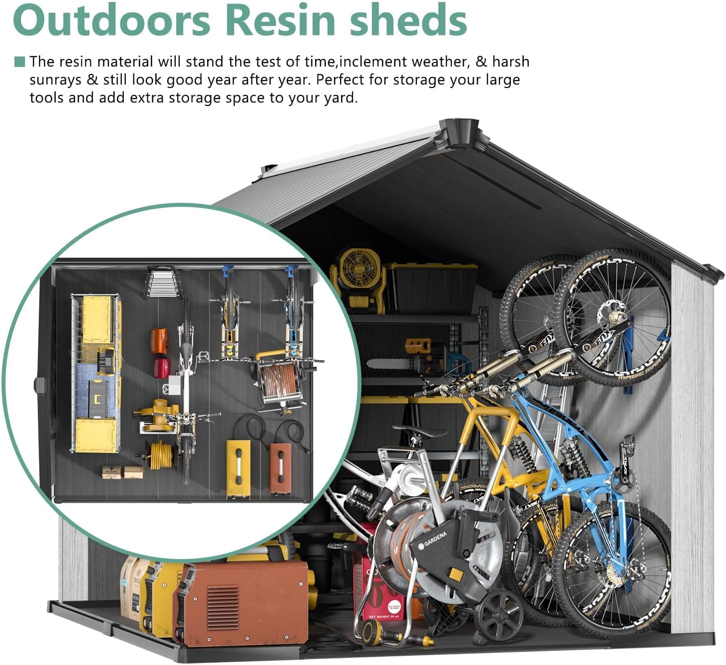 - 【Sturdy and Long-lasting】Crafted from recyclable and eco-friendly polypropylene material, this outdoor storage shed prioritizes safety while offering exceptional durability. It is designed to withstand various weather conditions, including UV radiation, moisture, and temperature fluctuations, ensuring a longer lifespan. The addition of galvanized steel further enhances stability, ensuring that the shed remains sturdy and resilient.