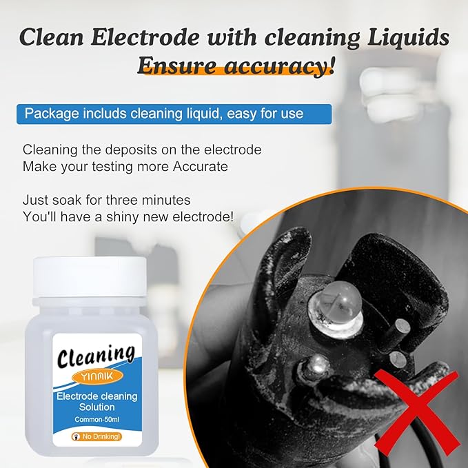- 😀Complete accessories&Worry-free service : ① YINMIK pH Meter package includes pH and EC calibration liquids and Electrode cleaning liquid. You don't need to spend time preparing the solution . ② All accessories matching this pH ppm meter can be found in YINMIK Store: pH&EC Calibration liquid, New Replacement probe, Probe cleaning liquid, Probe protective solution ③YINMIK brand purpose is customer first. YINMIK team is online 24 hours , your questions will be answered within 12 hours