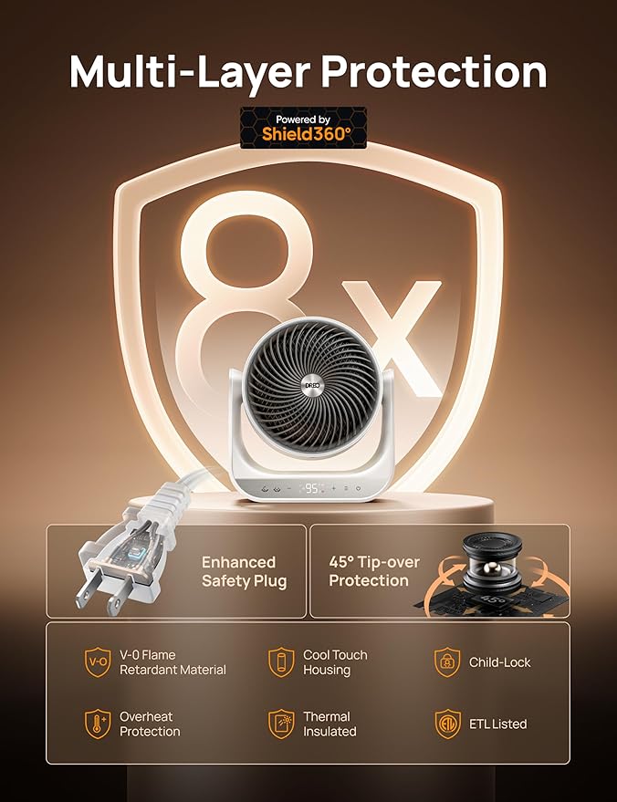 - ๐ผ๐๐ซ๐๐ฃ๐๐๐ ๐๐๐๐๐ฉ๐ฎ ๐ผ๐จ๐จ๐ช๐ง๐๐: With overheat shutoff, tip-over protection, and flame-retardant housing, this ETL-listed room heater brings safe, reliable warmth you can trust daily.