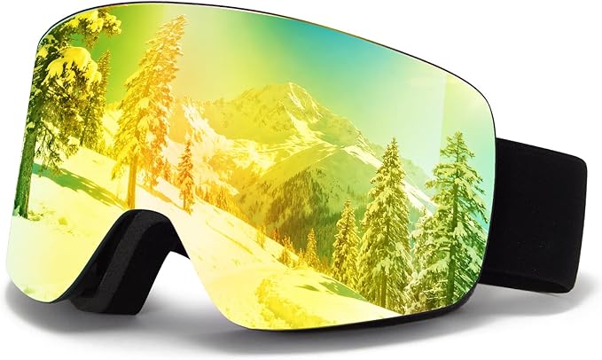 - Full REVO Lens Coating Design & UV400: You will receive 1 x ski goggles, 1 x carrying pouch and 1 x instruction manual. The adult ski goggles with full REVO lens coating can provide an outstanding clear field of vision. Our snow goggles feature UV400 lenses that can block uv rays and protect your eyes from long-term damage.
