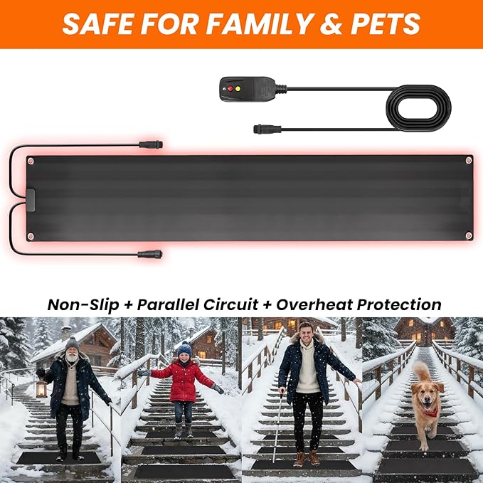 - ⚡ FASTER SNOW MELTING SPEED – Advanced graphene heating film melts snow and ice up to 3 inches per hour, nearly 3X faster than traditional mats, keeping stairs clear and safe in extreme winter.