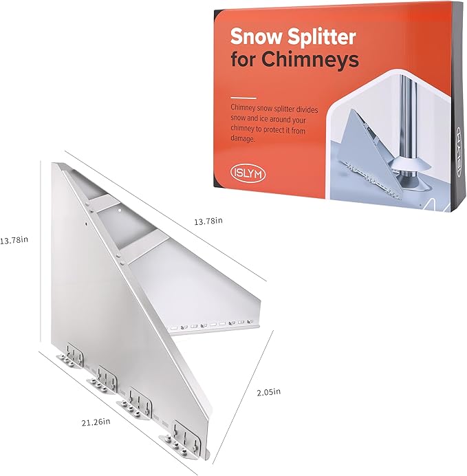 - ISYLM Genuine Snow Splitter for Chimneys, adjustable stainless steel mounting feet can be installed where you need them, avoiding the structural ribs of the roof without cutting or modifying anything
