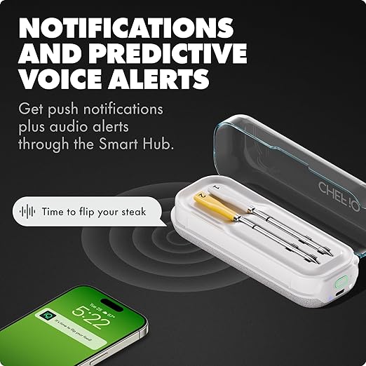 - TWO PROBES INCLUDED: Cook two different proteins at the same time or two steaks to different donenesses, so you can enjoy medium-rare ribeye and perfectly cooked chicken in the same meal. The hub can charge both probes simultaneously.