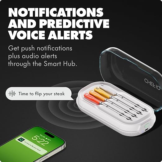 - ENGINEERED FOR DURABILITY: Crank up the grill! The CHEF iQ thermometer for cooking is built to endure 1000°F heat and features an ultra-thin probe design to keep proteins intact and juices inside.