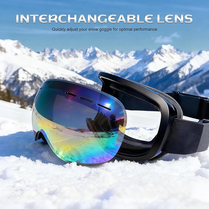 - 【Clear Vision in Snowy Conditions】 Anti-fog dual-layer lens helps keep your view clear while skiing or snowboarding. UV protection reduces glare from snow, improving visibility and confidence on the slopes.